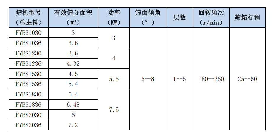同樣或相近的配置,FYBS方形搖擺篩比一般慣性振動篩有更高的處理能力和篩分效率,其本質是:該機型可人為控制物料在篩面上的運動軌跡和滯留時間,即在有限空間,由物料的運動軌跡為速度和加速度均為變化非線性曲線,所以,物料與篩面有更多接觸機率,自然也就增加了透篩率。